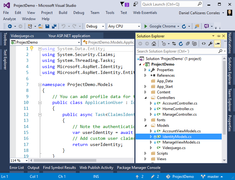 Dentro de la carpeta Models abrir el archivo IdentityModels.cs que contiene el DbContext de nuestra aplicación.